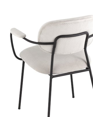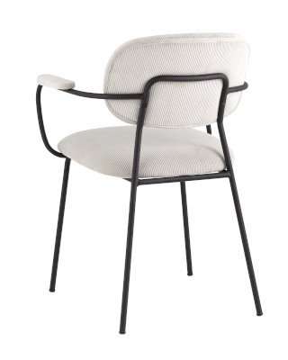 Современный обеденный стул с подлокотниками и металлическими ножками. Обивка выполнена из мягкого велюра. Металлический каркас черного цвета огибает спинку и плавно переходит из подлокотников в ножки. Широкое сиденье обеспечивает удобную посадку и уют. На подлокотниках для дополнительного комфорта предусмотрены мягкие накладки.