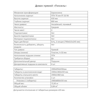 Диван Пиксель (Аквилон) - за 30 305 руб. в Иркутске. Купите на сайте mebelmarket-irkutsk.ru или по телефону 8(800)505-30-63 уже сегодня! Уточнить наличие, комплектацию, актуальную цену можно бесплатно у менеджера ежедневно. Закажите Диван Пиксель (Аквилон) до конца акции! Доступна покупка в кредит, рассрочку. Доставим со склада или на заказ.