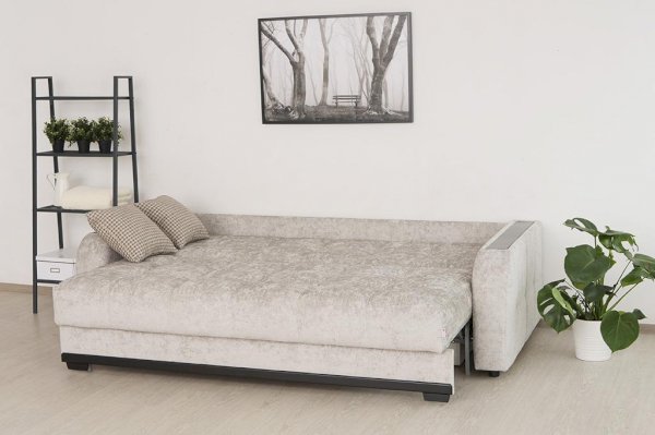Модель выполнена на металлокаркасе и имеет повышенный срок эксплуатации по сравнению с деревянными аналогами. Диван оснащен одним из самых популярных механизмов трансформации - пантограф. "Шагающий" механизм удобен и прост в эксплуатации и позволяет без проблем раскладывать диван, не повреждая пол и не скатывая напольное покрытие. В полностью разложенном виде Монако превращается в двуспальную кровать.