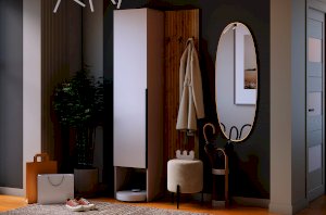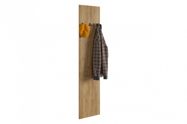 Принт, имитирующий вертикальную фрезеровку придает вешалке уникальный и современный вид, добавляя текстуру и глубину. Материал вешалки – ЛДСП, что обеспечивает прочность и долговечность, а также легкость в уходе.