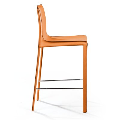 Главная особенность модели – плавный переход спинки в сиденье, образующий мягкий изгиб. Ножки стула, также обтянутые кожей, создают единый образ и являются визуальным продолжением сиденья.