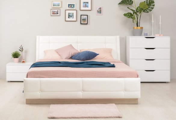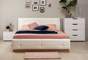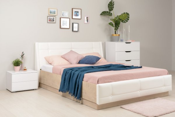 • Мягкое изголовье изголовье кровати установлено с небольшим наклоном, что добавляет возможность не только лежать в кровати, но и комфортно сидеть, как на диване