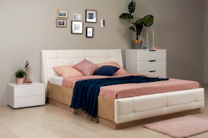 Тип кровати с мягкой обивкой / деревянная