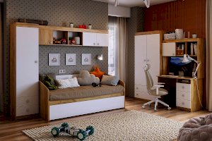 Длинная штанга для одежды и 2-а больших выдвижных ящика для белья - отличное решение для детской.